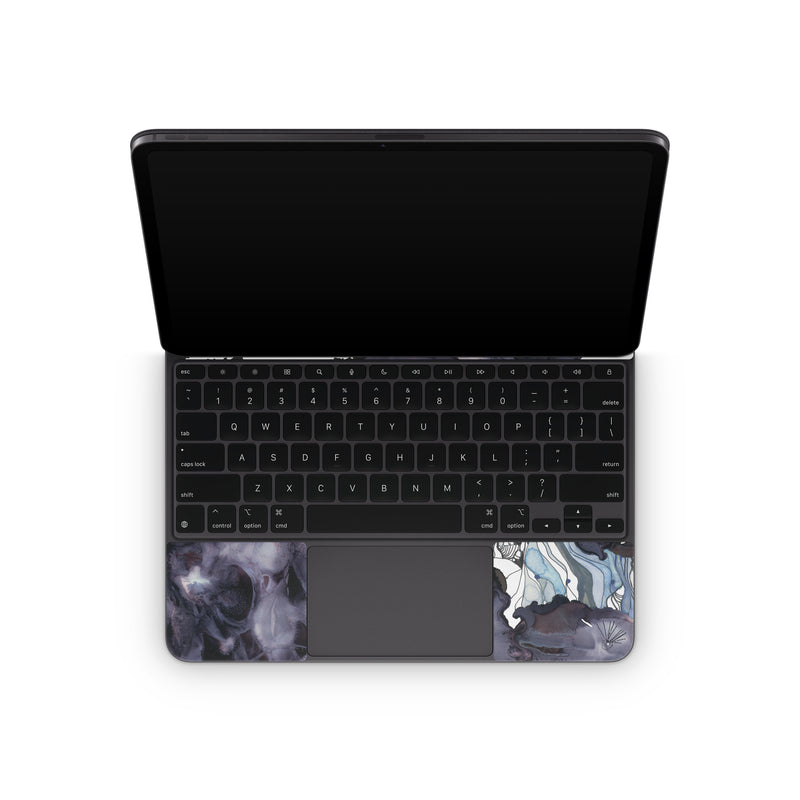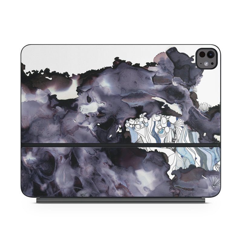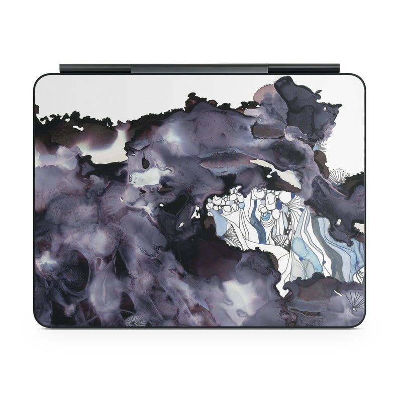 iStyles Magic Keyboard for iPad Series Skin design of Watercolor paint, Illustration, Art, World, Paint, Cg artwork, Drawing, Graphic design, Animation, Rock, with black, purple, white, blue colors, and tagged with abstract, nature, abstract, purple, watercolor.