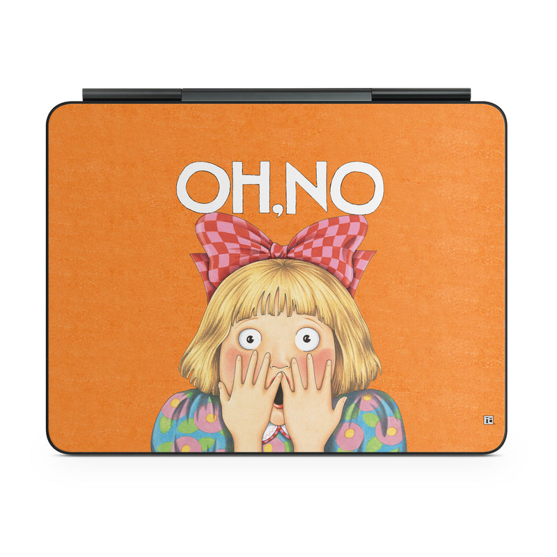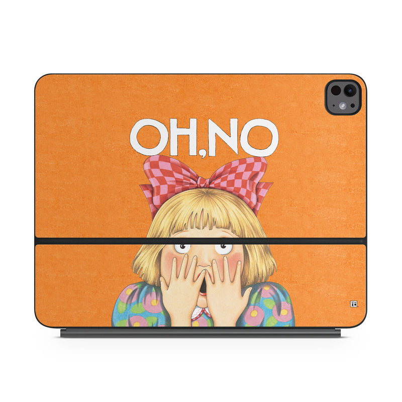 iStyles Magic Keyboard for iPad Series Skin design of Cartoon, Nose, Illustration, Poster, Art, Fiction, Book cover, Happy, Gesture, with orange, pink, gray, green, red, white colors, and tagged with people, signs.