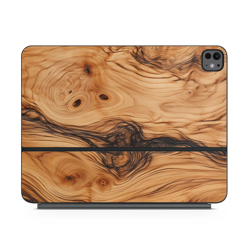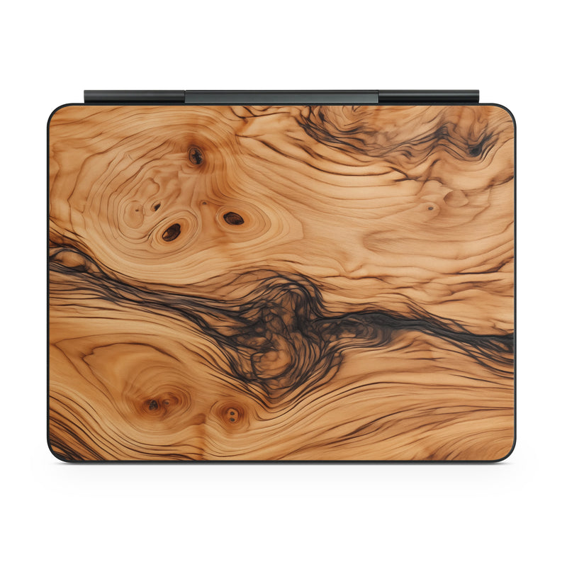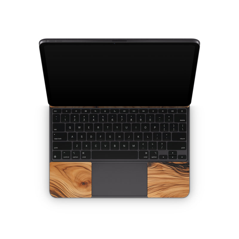 iStyles Magic Keyboard for iPad Series Skin design of Brown, Wood, Trunk, Wood stain, Floor, Liquid, Art, Woody plant, Landscape, Flooring, with black, brown, orange colors, and tagged with lookslike, patterns, wood, olea, europaea.