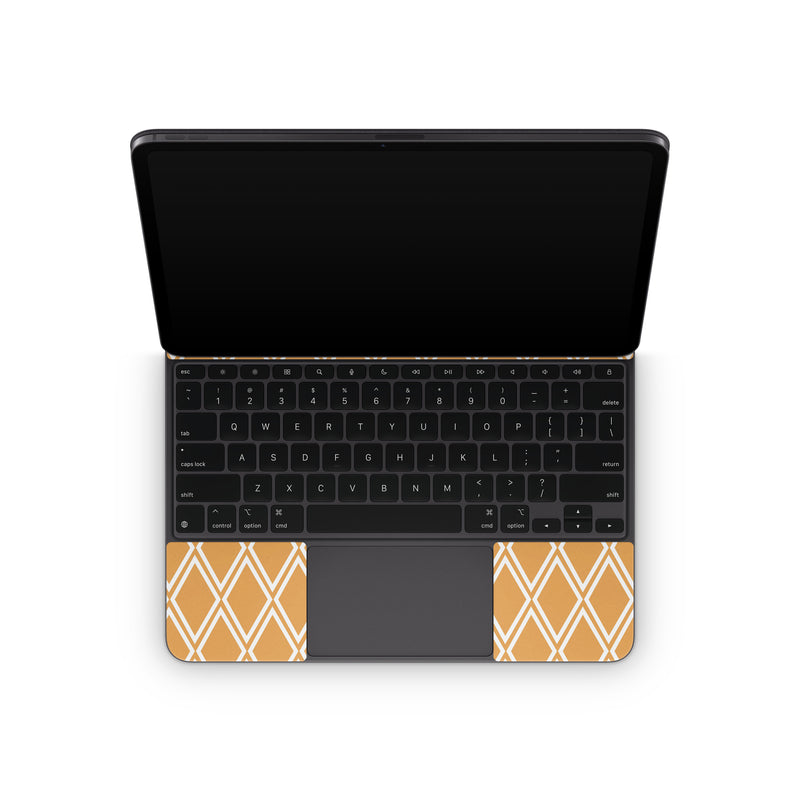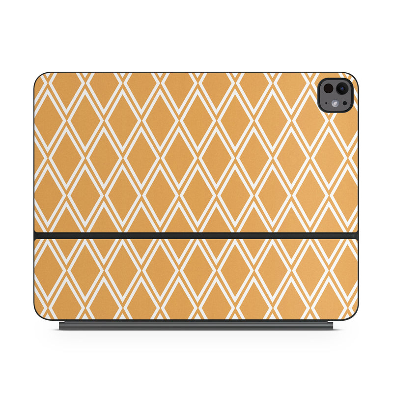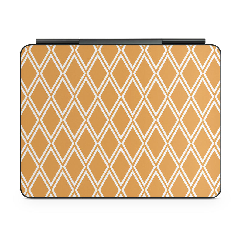 iStyles Magic Keyboard for iPad Series Skin design of Textile, Orange, Font, Material property, Symmetry, Rectangle, Pattern, Circle, Parallel, Tints and shades, with orange, white colors, and tagged with patterns, checks.