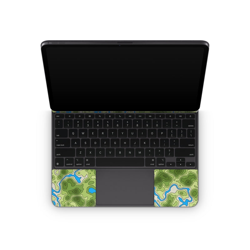 iStyles Magic Keyboard for iPad Series Skin design of Botany, Azure, Organism, Vegetation, Aqua, Terrestrial plant, Symmetry, Electric blue, Pattern, Art, with green, blue colors, and tagged with patterns, geography, map, outdoors, topo, topographic, topography, travel.