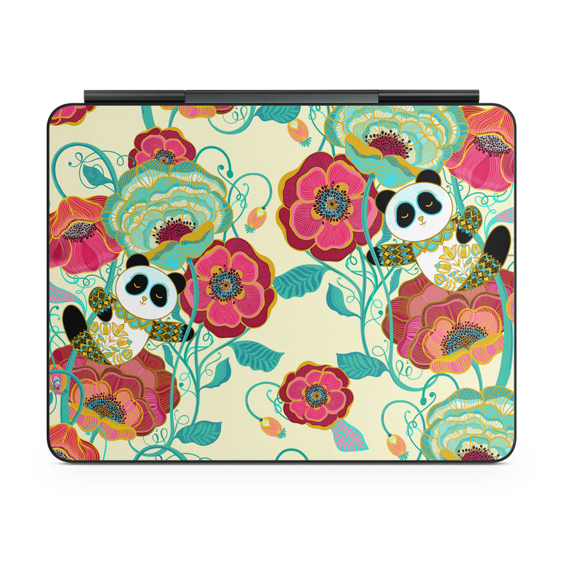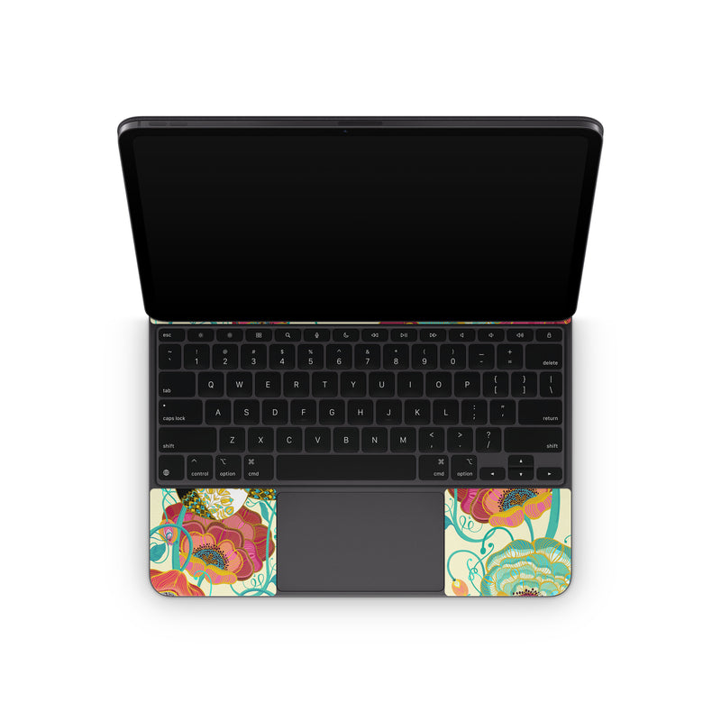 iStyles Magic Keyboard for iPad Series Skin design of Plant, Product, Green, Botany, Art, Flower, Pink, Rectangle, Red, Aqua, with white, red, pink, yellow, green, blue, black colors, and tagged with patterns, flowers, animals, objects, people, golden, pandas, flowers, garden.