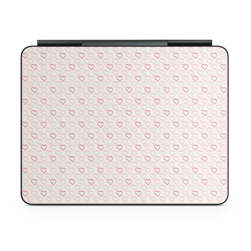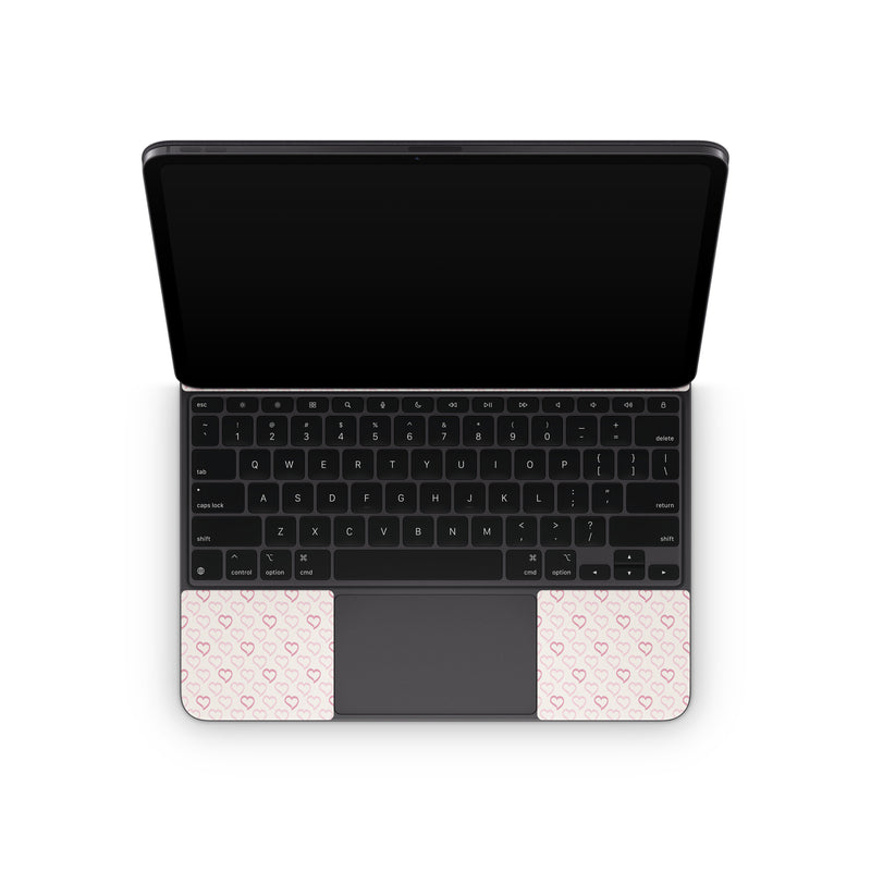 iStyles Magic Keyboard for iPad Series Skin design of Grey, Pattern, Font, Circle, Magenta, Symmetry, Metal, Rectangle, Composite material, Flooring, with white, purple, pink colors, and tagged with hearts, patterns, pink, purple, heart, pattern, love, valentine.