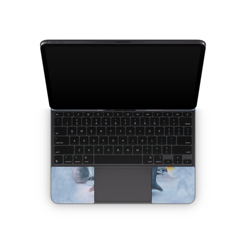 iStyles Magic Keyboard for iPad Series Skin design of Bird, Vertebrate, Flightless bird, Penguin, Gentoo penguin, Emperor penguin, King penguin, Beak, Wildlife, Arctic, with gray, black, blue, purple colors, and tagged with animals, animals, arctic, heart, penguin.