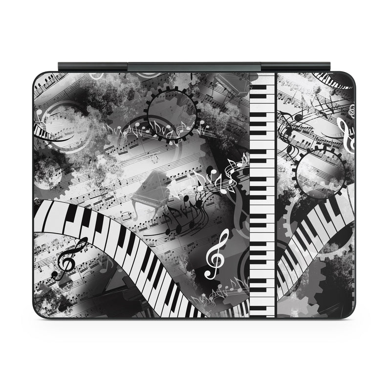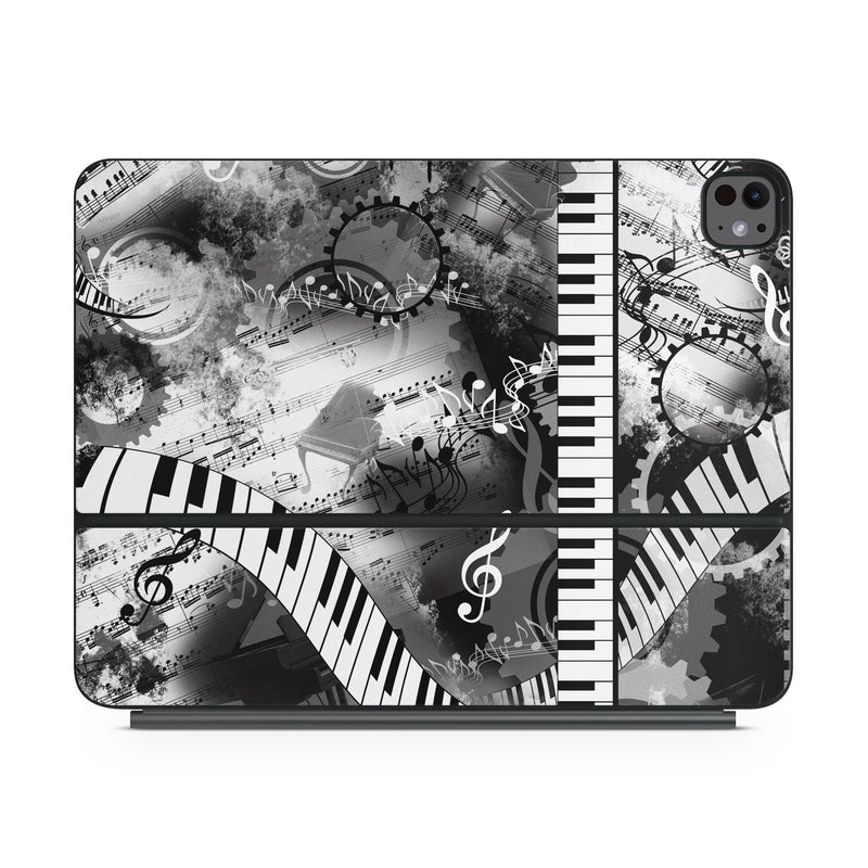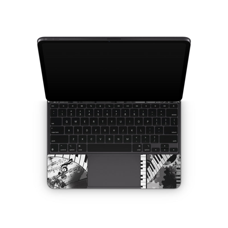 iStyles Magic Keyboard for iPad Series Skin design of Music, Monochrome, Black-and-white, Illustration, Graphic design, Musical instrument, Technology, Musical keyboard, Piano, Electronic instrument, with black, gray, white colors, and tagged with patterns, music.