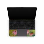 iStyles Magic Keyboard for iPad Series Skin design of Flowering plant, Purple coneflower, Coneflower, Flower, Plant, Watercolor paint, Wildflower, black-eyed susan, Petal, Daisy family, with black, green, red, gray, purple colors, and tagged with flowers, fineart.