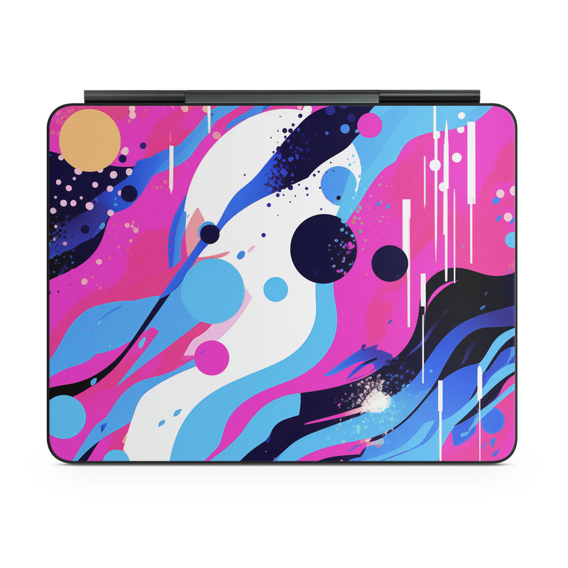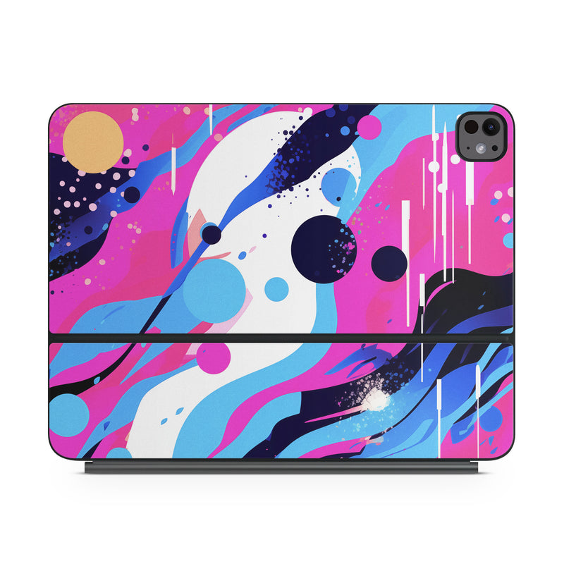 iStyles Magic Keyboard for iPad Series Skin design of Organism, Art, Line, Font, Magenta, Art paint, Paint, Pattern, Electric blue, Tints and shades, with pink, blue, white, black, orange colors, and tagged with abstract, abstract, circles, waves.