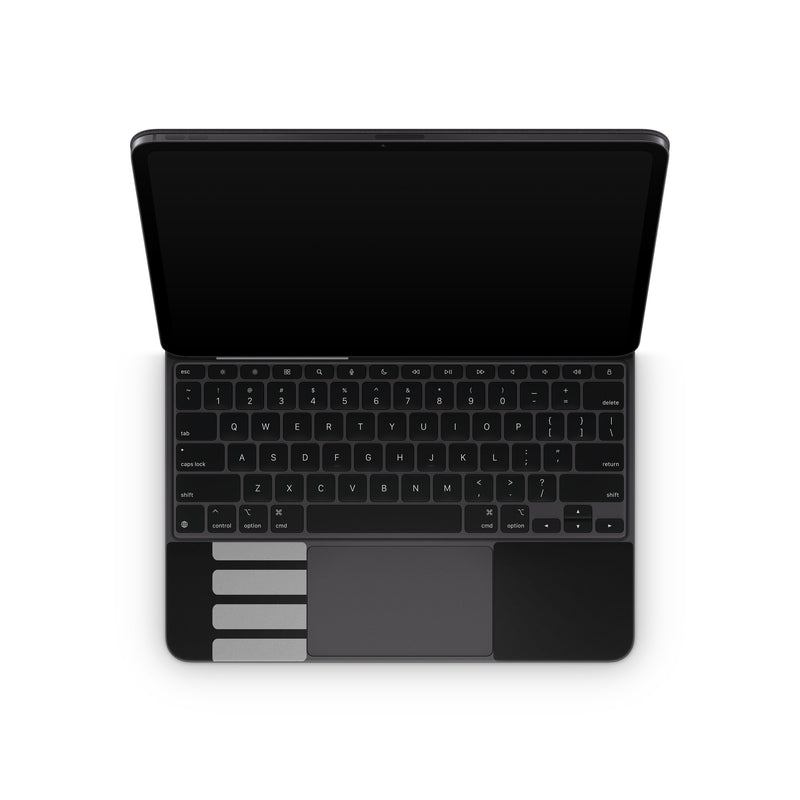 iStyles Magic Keyboard for iPad Series Skin design of Text, Black, Font, Logo, Line, Design, Material property, Pattern, Brand, Technology, with black, gray, red colors, and tagged with lookslike, objects, Nintendo.