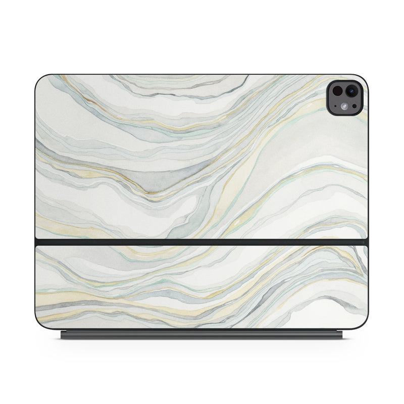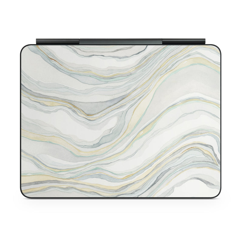iStyles Magic Keyboard for iPad Series Skin design of Line, Pattern, with yellow, white, blue, gray colors, and tagged with patterns, abstract, earthtones, neutral, watercolor.