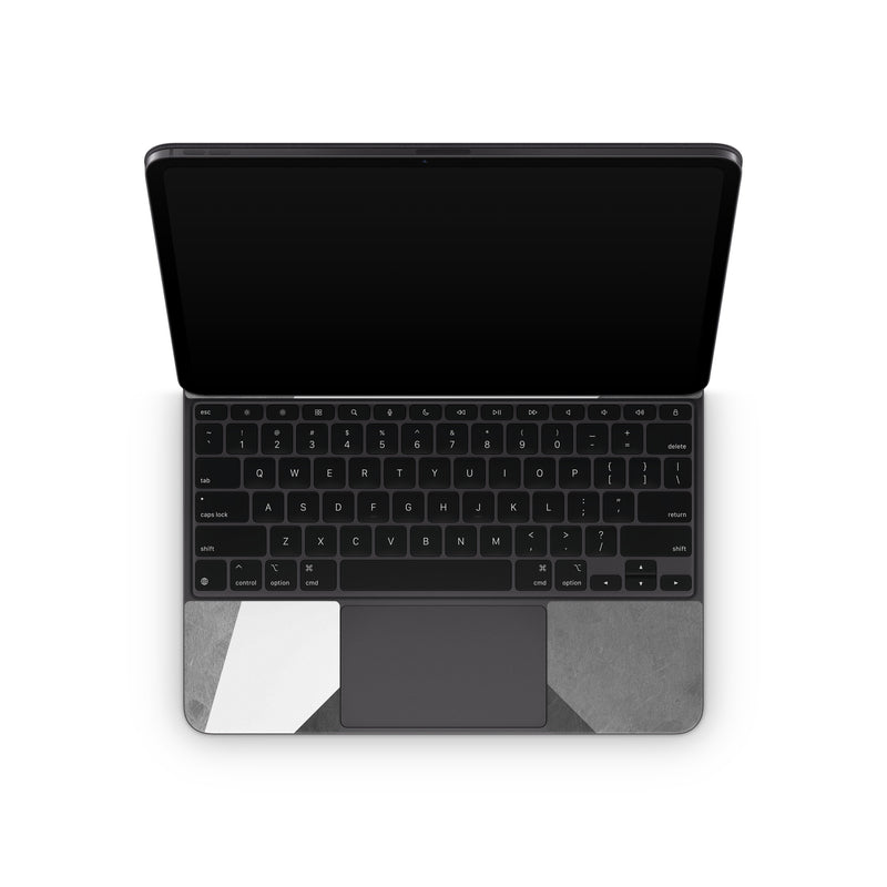 iStyles Magic Keyboard for iPad Series Skin design of Black, White, Black-and-white, Line, Grey, Architecture, Monochrome, Triangle, Monochrome photography, Pattern, with white, black, gray colors, and tagged with patterns, block, blocking, color, colorblock, geometric, shape, simple.