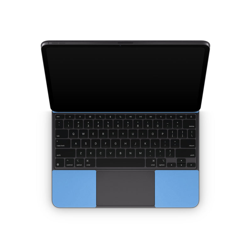 iStyles Magic Keyboard for iPad Series Skin design of Sky, Blue, Daytime, Aqua, Cobalt blue, Atmosphere, Azure, Turquoise, Electric blue, Calm, with blue colors, and tagged with solidcolors, calm, serenity, stability, reliability, open, spaces, freedom, intuition, imagination, inspiration, sensitivity.