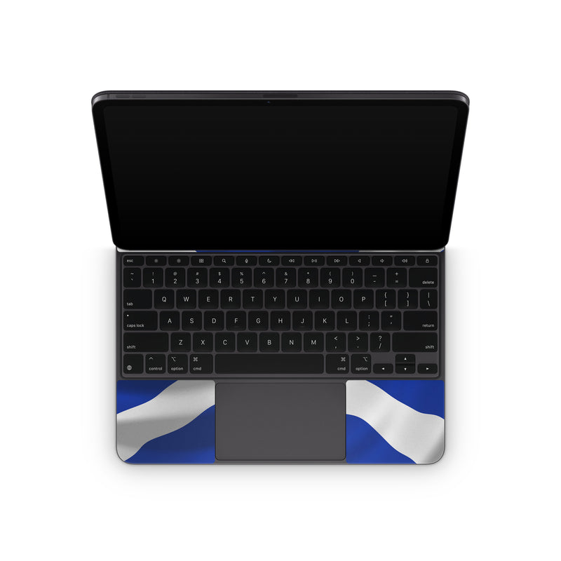 iStyles Magic Keyboard for iPad Series Skin design of Flag, Blue, Cobalt blue, Electric blue, Gesture, Flag of the united states, with blue, gray, black, white colors, and tagged with flags.