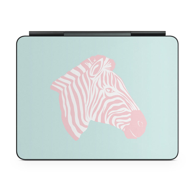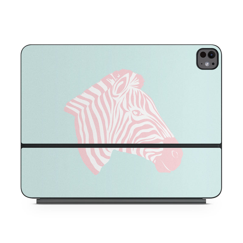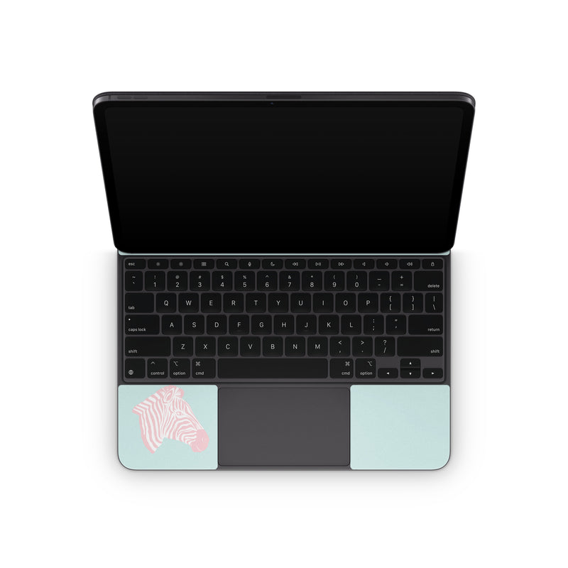 iStyles Magic Keyboard for iPad Series Skin design of Sleeve, Fin, Art, Terrestrial animal, Snout, Painting, Fish, Marine biology, Magenta, Pattern, with pink, white, blue colors, and tagged with patterns, animals, pink, stripes, zebra.