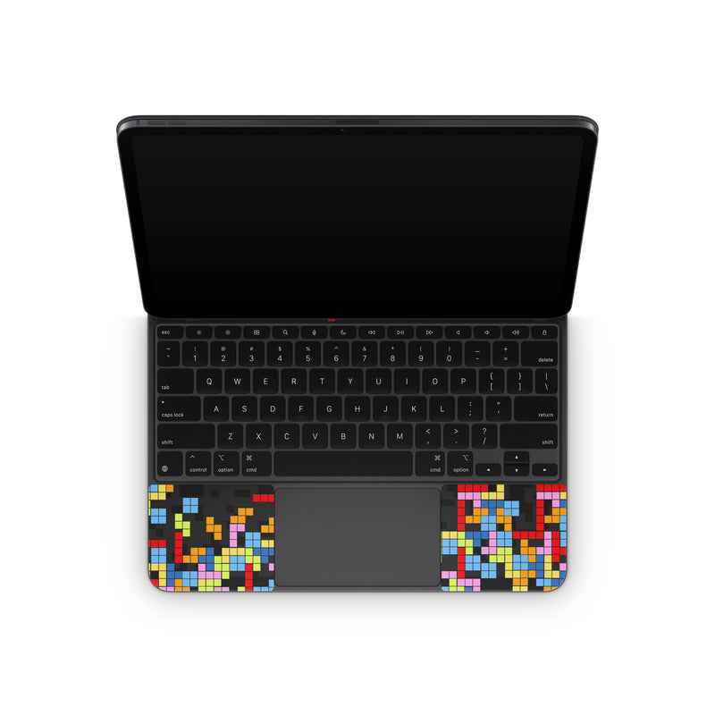 iStyles Magic Keyboard for iPad Series Skin design of Pattern, Symmetry, Font, Design, Graphic design, Line, Colorfulness, Magenta, Square, Graphics, with black, green, blue, orange, red colors, and tagged with patterns, objects.