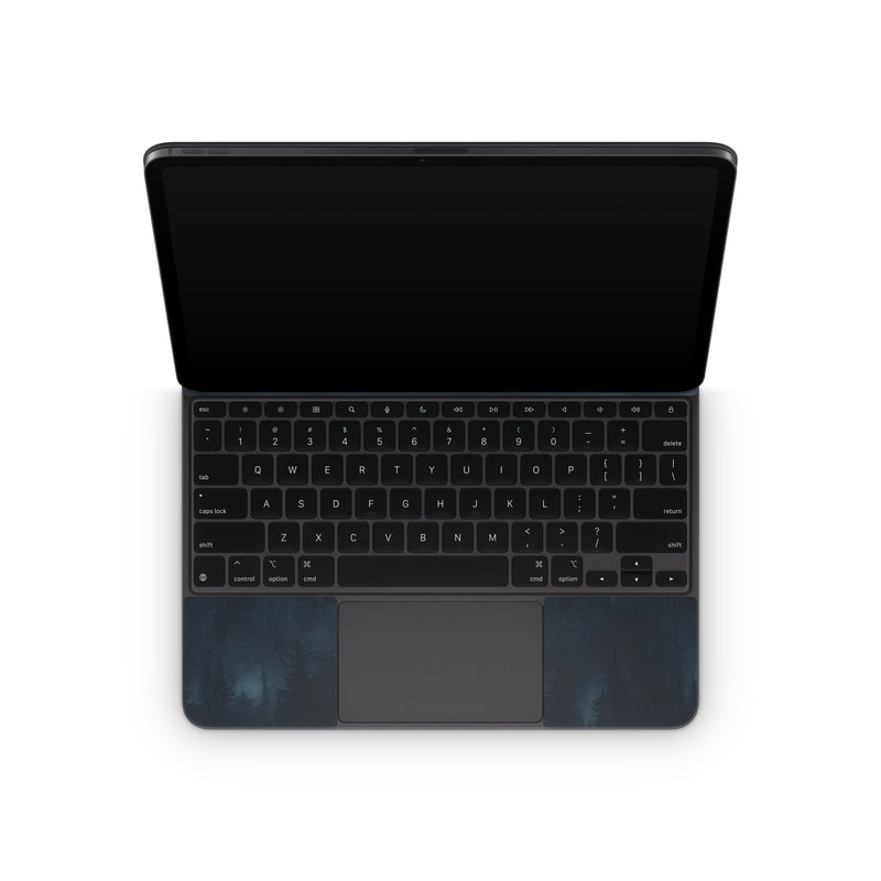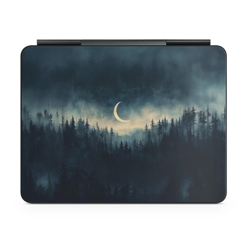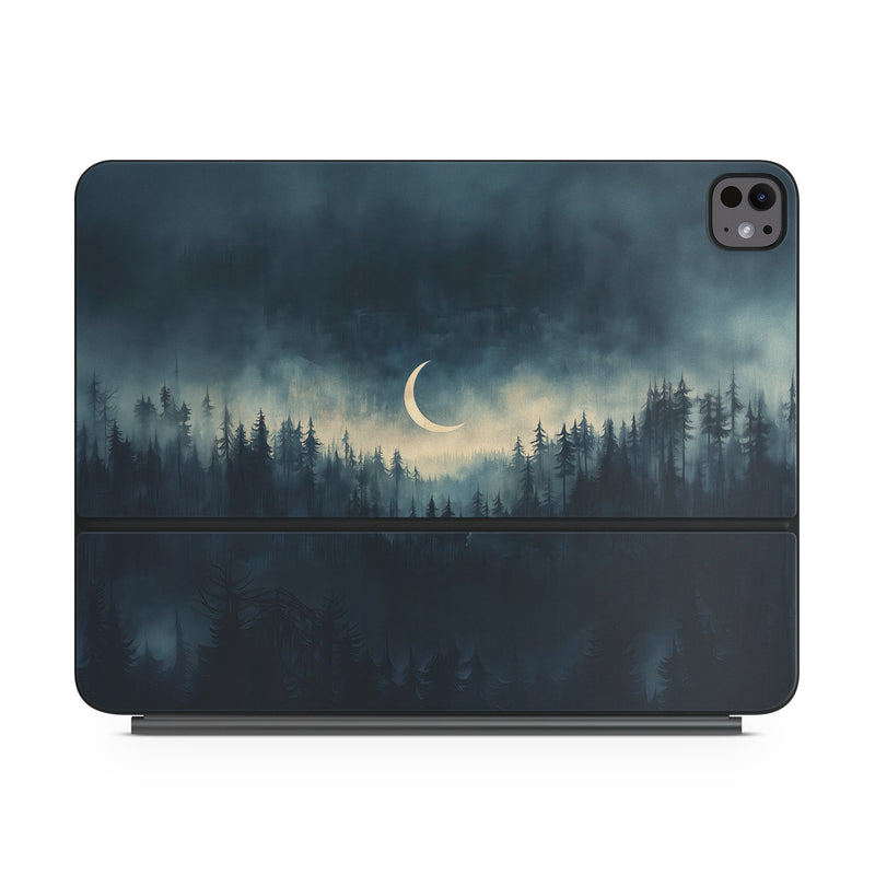 iStyles Magic Keyboard for iPad Series Skin design of Cloud, Sky, Atmosphere, Moon, Ecoregion, Crescent, Natural landscape, Tree, Plant, Dusk, with black, blue, white, gray colors, and tagged with nature, fineart, space, forest, night, clouds.