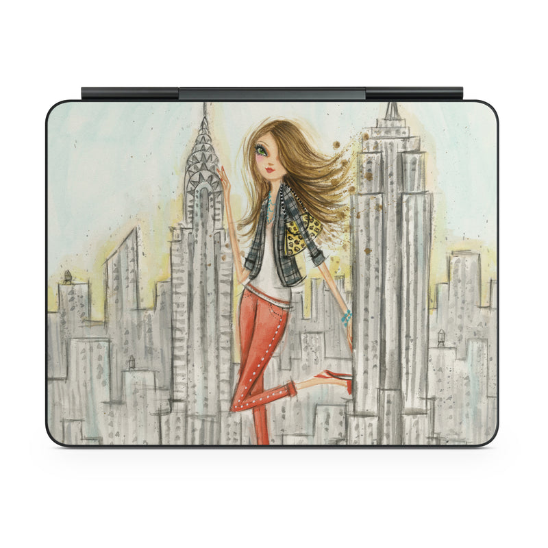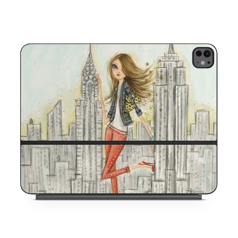 iStyles Magic Keyboard for iPad Series Skin design of Human settlement, Fashion illustration, Illustration, City, Art, Architecture, Drawing, Fictional character, with gray, green, black, red colors, and tagged with people, objects, urban, fashion, fineart.