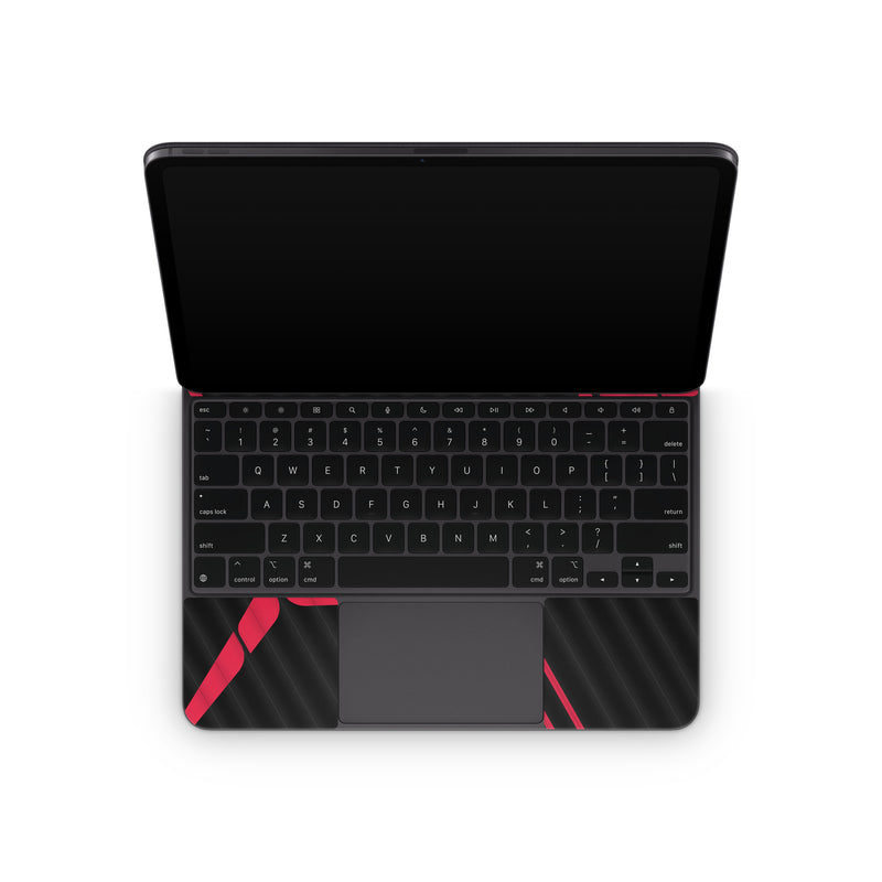 iStyles Magic Keyboard for iPad Series Skin design of Sleeve, Triangle, Font, Rectangle, Parallel, Magenta, Electric blue, Pattern, Symmetry, T-shirt, with black, red colors, and tagged with patterns, hexagon, pattern, lines.
