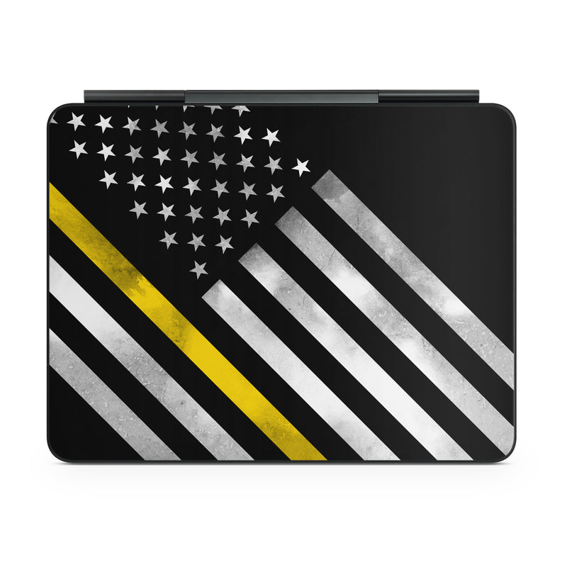 iStyles Magic Keyboard for iPad Series Skin design of Flag of the united states, Flag, Yellow, Line, Black-and-white, Pattern, Monochrome, Graphic design, Parallel, with black, white, gray, yellow colors, and tagged with flags, signs, ems, fire, firstresponder, flag, police, rescue, thinline.