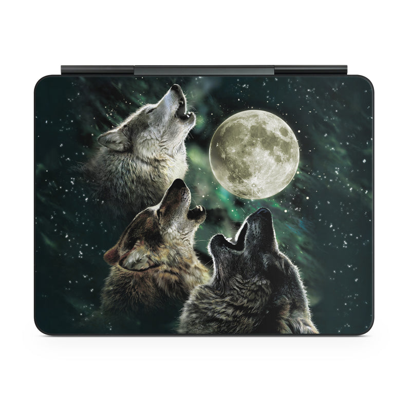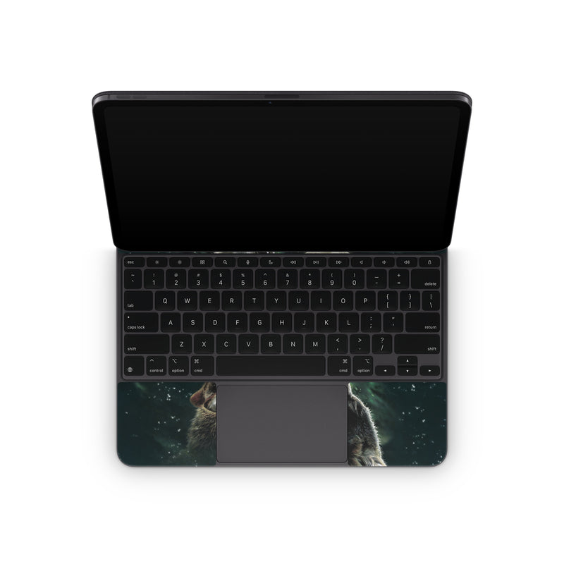 iStyles Magic Keyboard for iPad Series Skin design of Wolf, Light, Astronomical object, Moon, Wildlife, Organism, Moonlight, Sky, Atmosphere, Celestial event, with black, gray, green colors, and tagged with animals.