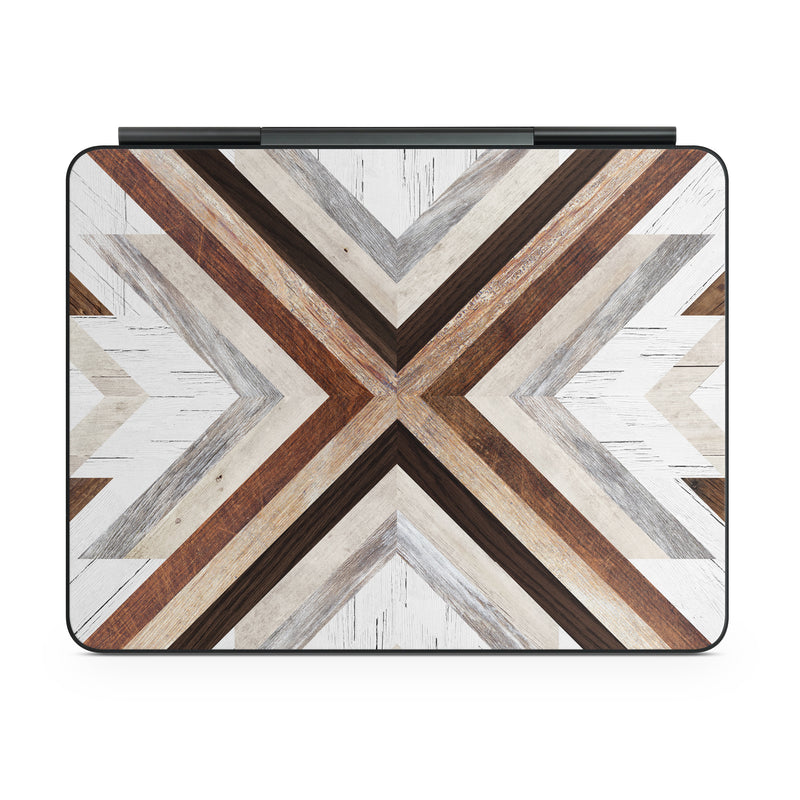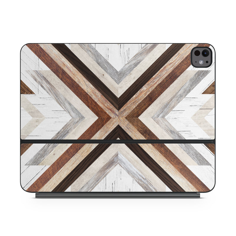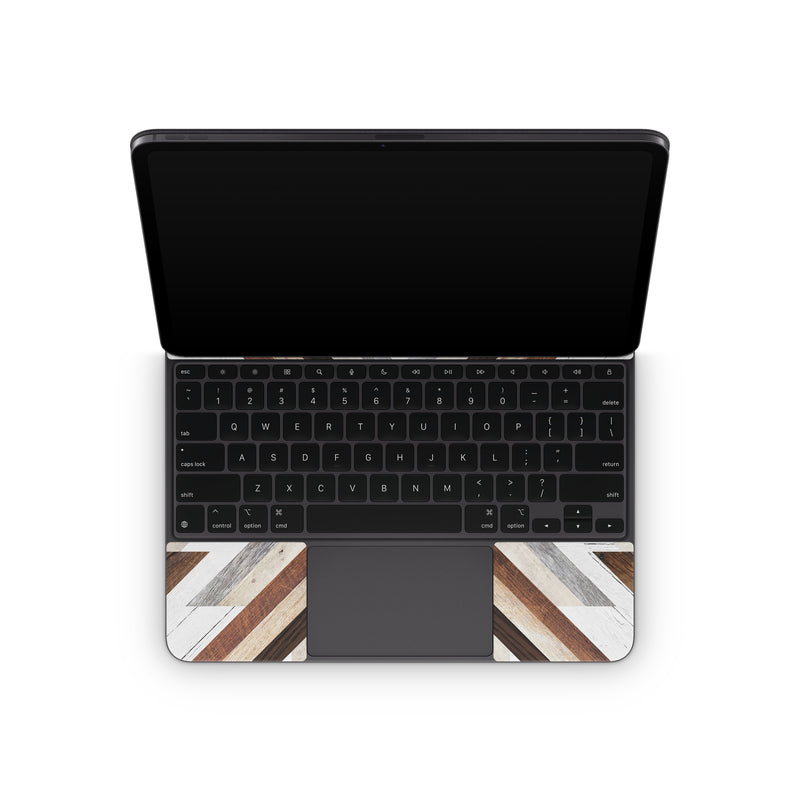 iStyles Magic Keyboard for iPad Series Skin design of Architecture, Line, Pattern, Brown, Symmetry, Wood, Design, Building, Facade, Material property, with white, brown, gray colors, and tagged with lookslike, patterns, nature, finish, geometric, natural, nature, stained, wood, wooden.