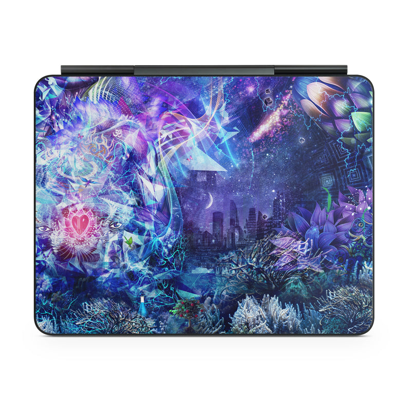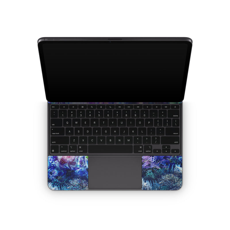iStyles Magic Keyboard for iPad Series Skin design of Blue, Purple, Violet, Lavender, Majorelle blue, Psychedelic art, Electric blue, Organism, Art, Design, with blue, green, purple, red, pink colors, and tagged with nature, flowers, urban.