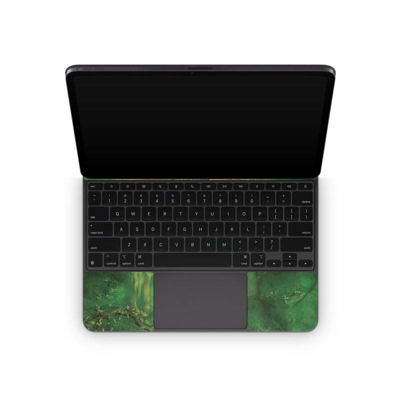 iStyles Magic Keyboard for iPad Series Skin design of Nature, Green, Painting, Art, Visual arts, Watercolor paint, Illustration, Modern art, Still life, with green, black, gray colors, and tagged with animals, nature, animals, butterfly, forest, nature, unicorn.