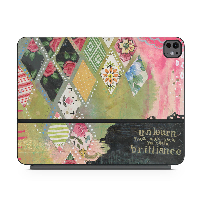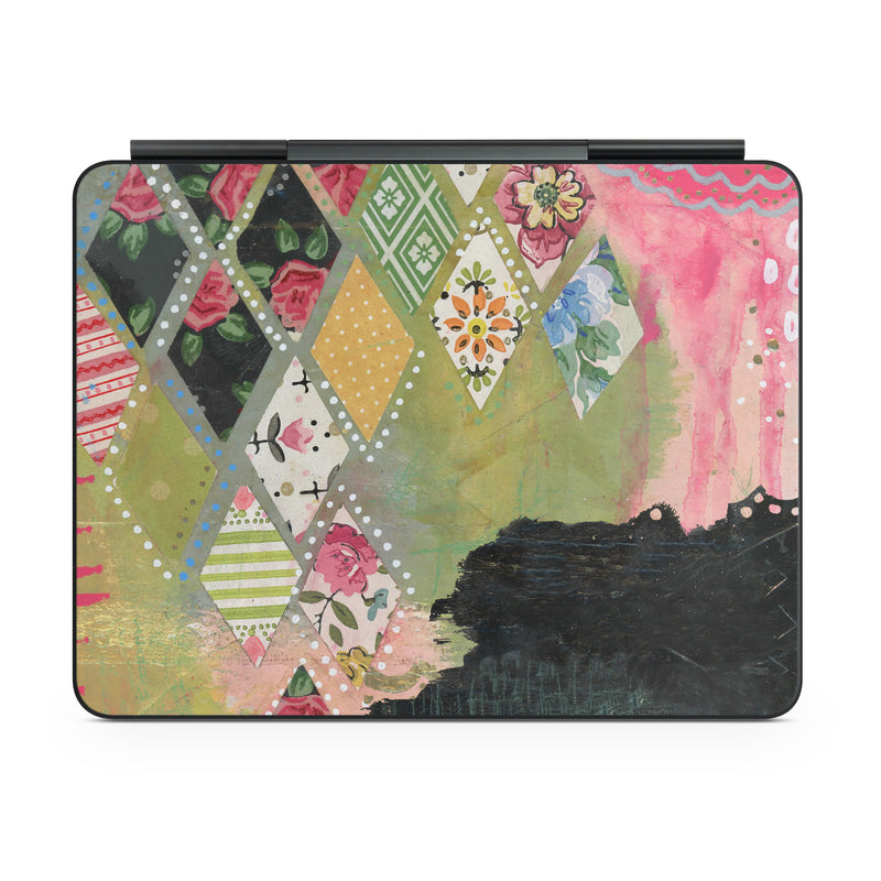 iStyles Magic Keyboard for iPad Series Skin design of Green, Pink, Textile, Pattern, Art, Visual arts, Magenta, Linens, Quilting, with red, pink, black, green colors, and tagged with flowers, signs, patterns, hopeful, inspiration, inspire, quotes.