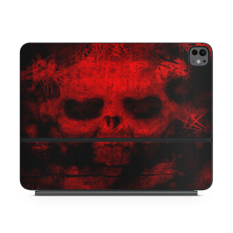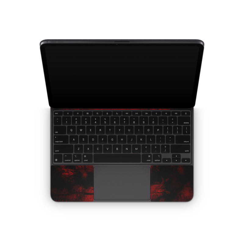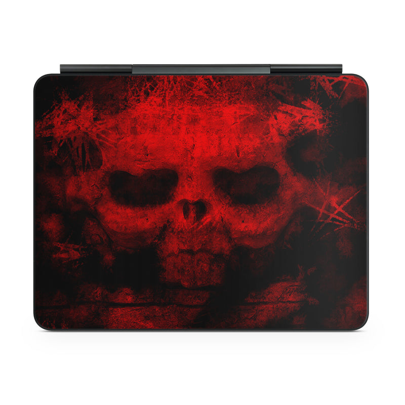 iStyles Magic Keyboard for iPad Series Skin design of Red, Skull, Bone, Darkness, Mouth, Graphics, Pattern, Fiction, Art, Fractal art, with black, red colors, and tagged with skulls.