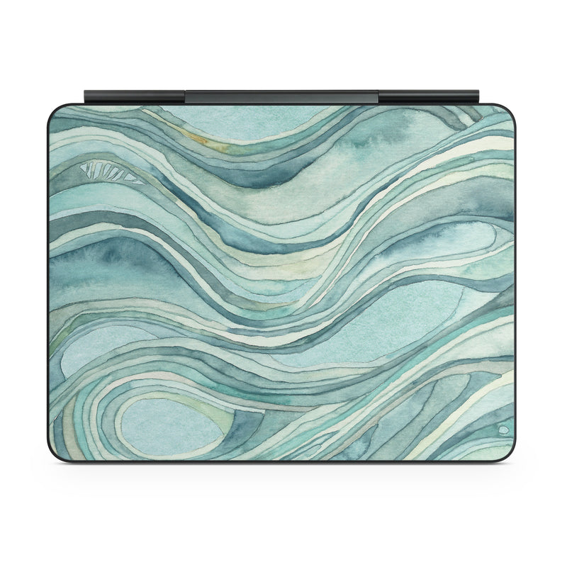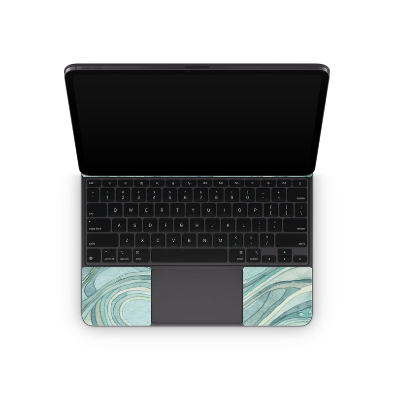 iStyles Magic Keyboard for iPad Series Skin design of Aqua, Blue, Pattern, Turquoise, Teal, Water, Design, Line, Wave, Textile, with gray, blue colors, and tagged with patterns.