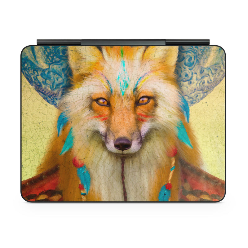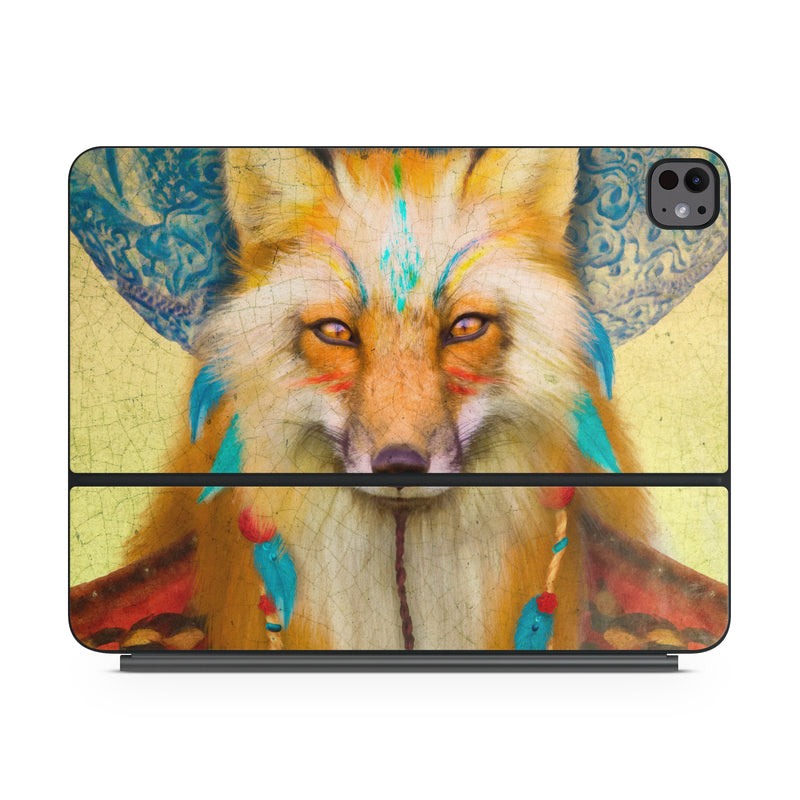 iStyles Magic Keyboard for iPad Series Skin design of Red fox, Canidae, Fox, Wildlife, Swift fox, Carnivore, Jackal, Fur, Snout, Art, with red, black, gray, green, blue colors, and tagged with animals, patterns.
