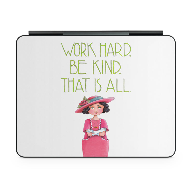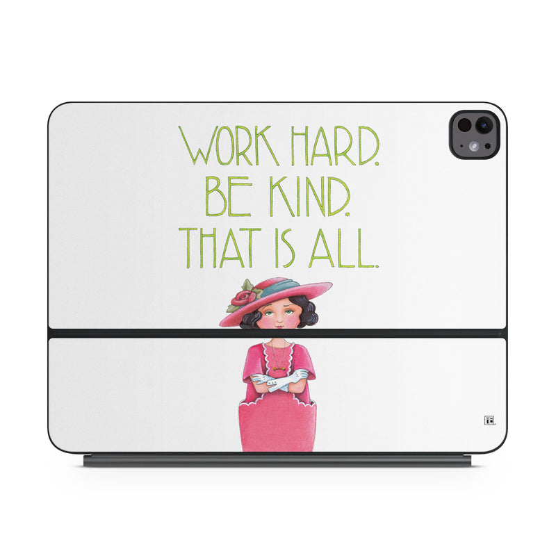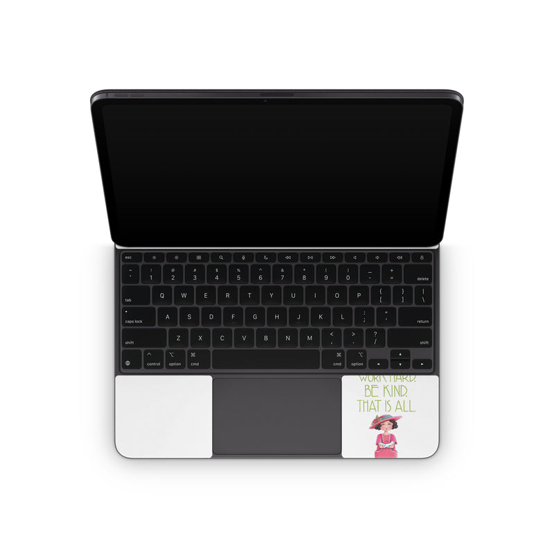 iStyles Magic Keyboard for iPad Series Skin design of Pink, Headgear, Font, Hat, with white, green, pink, black, white, yellow, blue colors, and tagged with signs, flowers, people, objects, cartoon, classy, draw, drawing, girl, green, lady, pink, woman, kind.