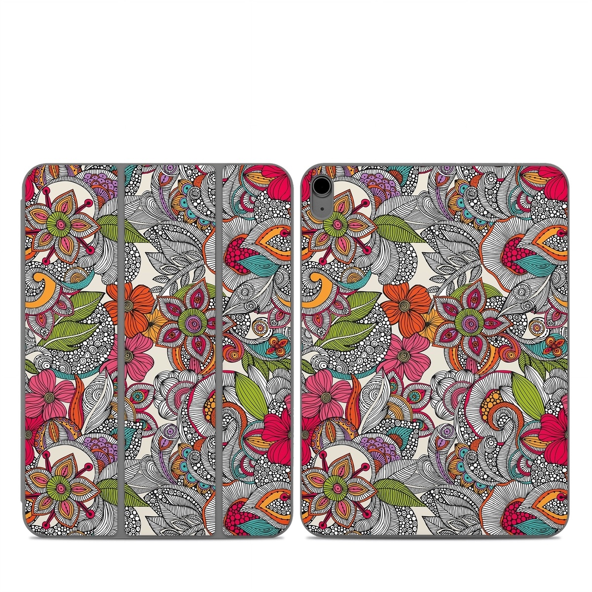 iStyles Smart Folio for iPad Series Skin design of Pattern, Drawing, Visual arts, Art, Design, Doodle, Floral design, Motif, Illustration, Textile, with gray, red, black, green, purple, blue colors, and tagged with flowers.