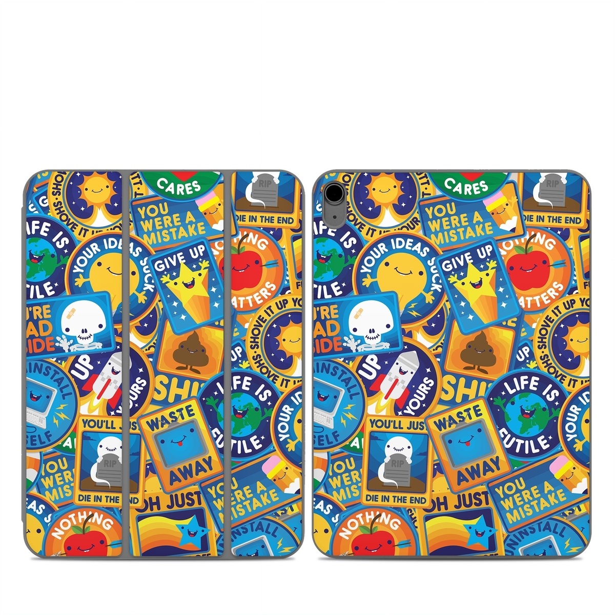 iStyles Smart Folio for iPad Series Skin design of Pattern, Visual arts, Design, Art, Mosaic, Psychedelic art, with blue, yellow, orange, white, green, red, gray colors, and tagged with patterns, signs, space, objects, hearts, fuck, funny, humor.