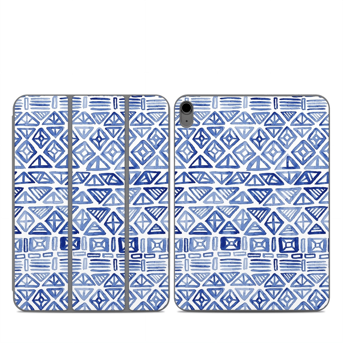 iStyles Smart Folio for iPad Series Skin design of Pattern, Line, Design, Symmetry, Visual arts, Parallel, with white, blue colors, and tagged with patterns, blue, geometric, magpiemoon, pattern, tribal, watercolor, white.
