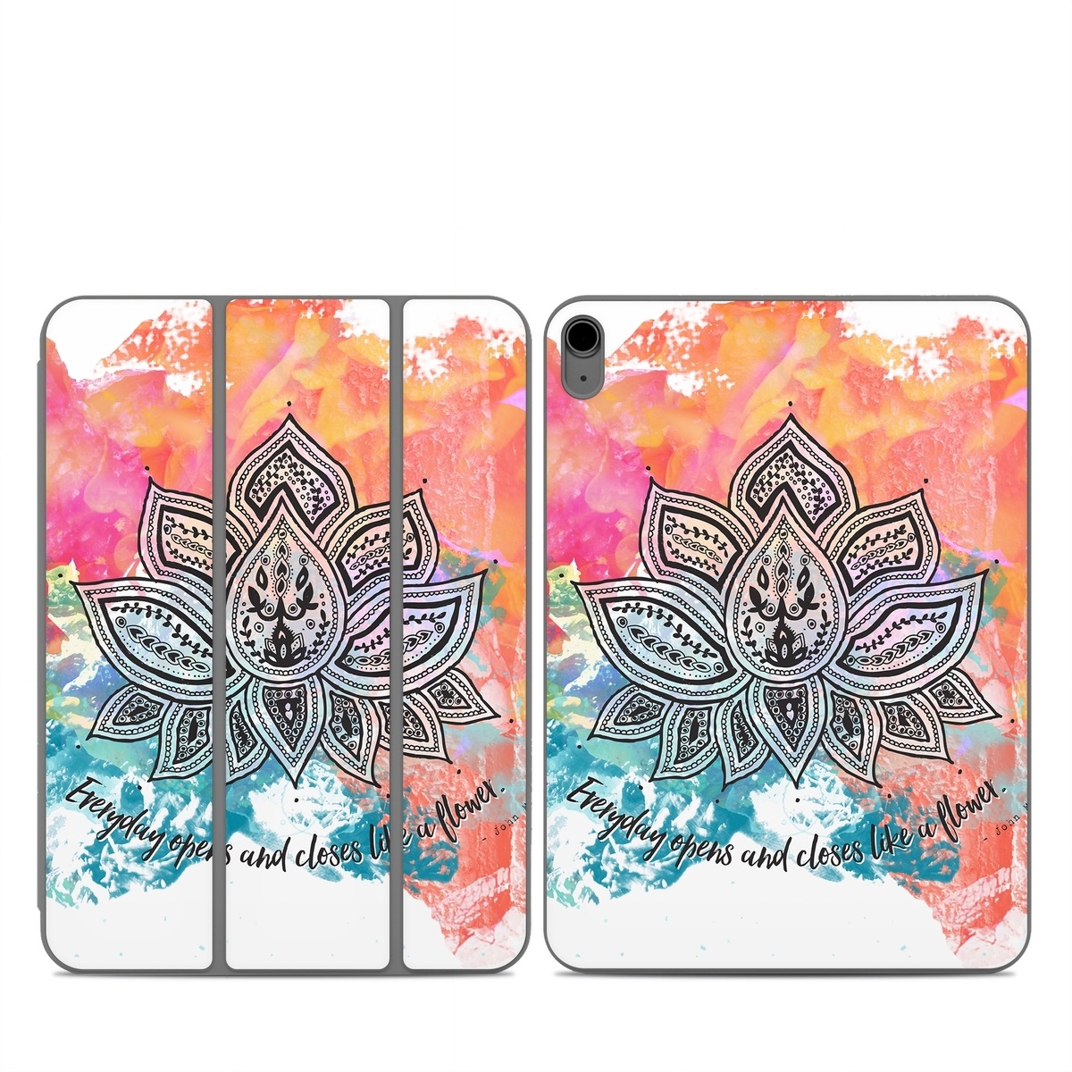 iStyles Smart Folio for iPad Series Skin design of Pink, Leaf, Pattern, Design, Graphic design, Illustration, Symmetry, Visual arts, Art, Plant, with orange, yellow, red, blue, green, black colors, and tagged with signs, flowers, colorful, flower, lotus.