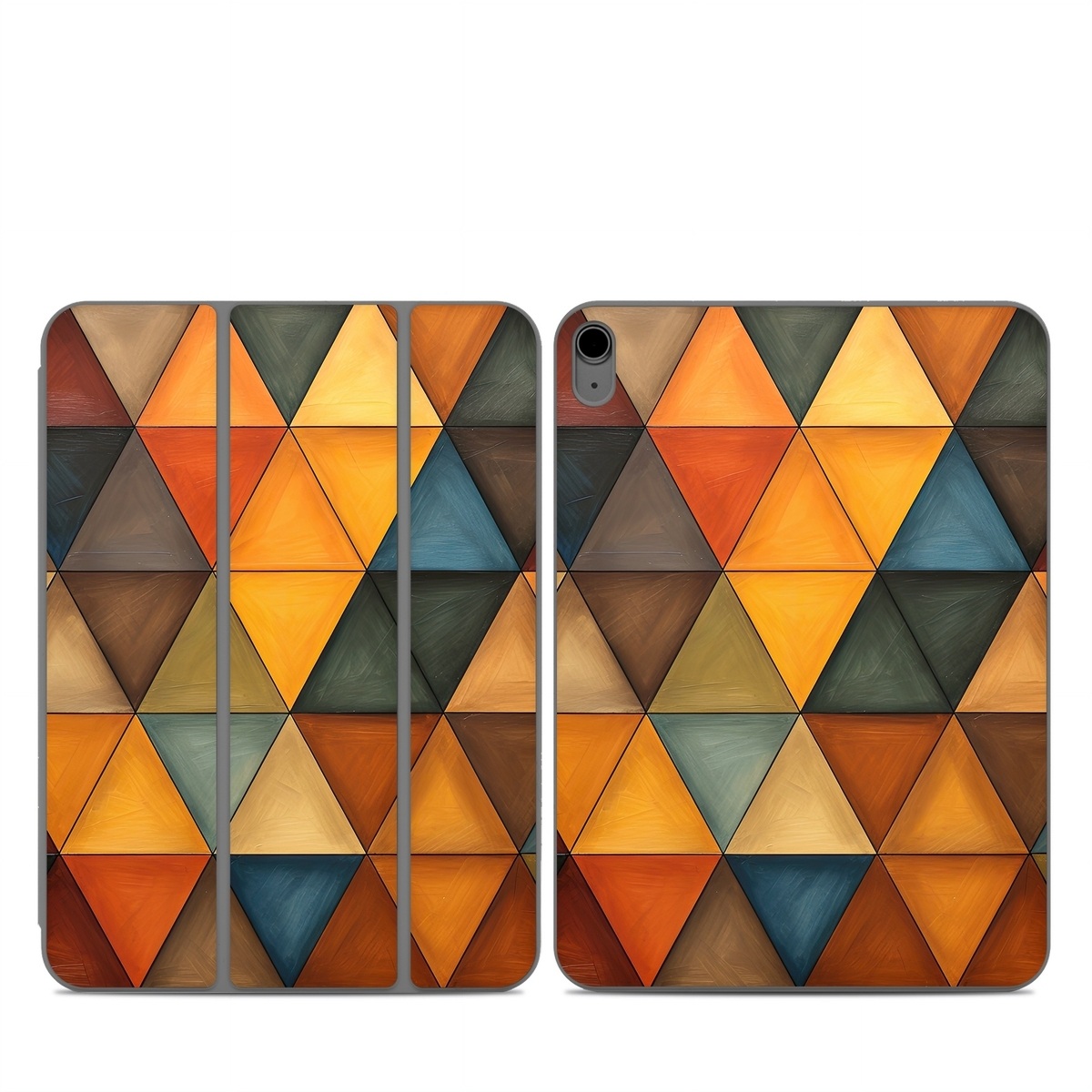iStyles Smart Folio for iPad Series Skin design of Brown, Colorfulness, Rectangle, Azure, Amber, Orange, Triangle, Art, Flooring, Line, with yellow, orange, red, black, blue, brown colors, and tagged with patterns, autumn, fall, pattern, triangles.