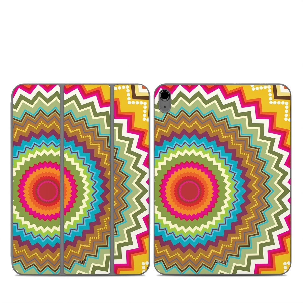 iStyles Smart Folio for iPad Series Skin design of Colorfulness, Textile, Art, Creative arts, Triangle, Rectangle, Symmetry, Circle, Pattern, Tints and shades, with red, orange, yellow, pink, green, white, black, blue, brown colors, and tagged with patterns, balance, bright, circle, circles, color, colorful, colors, mandala, spiral, zigzag.