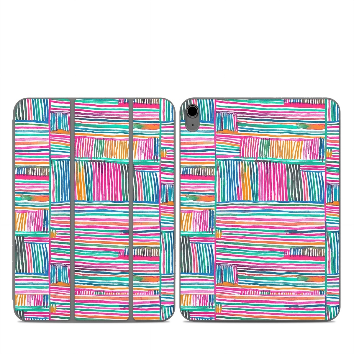 iStyles Smart Folio for iPad Series Skin design of Colorfulness, Product, Rectangle, Azure, Textile, Art, Aqua, Material property, Magenta, Tints and shades, with white, pink, orange, green, blue, yellow colors, and tagged with patterns, stripes, pattern.
