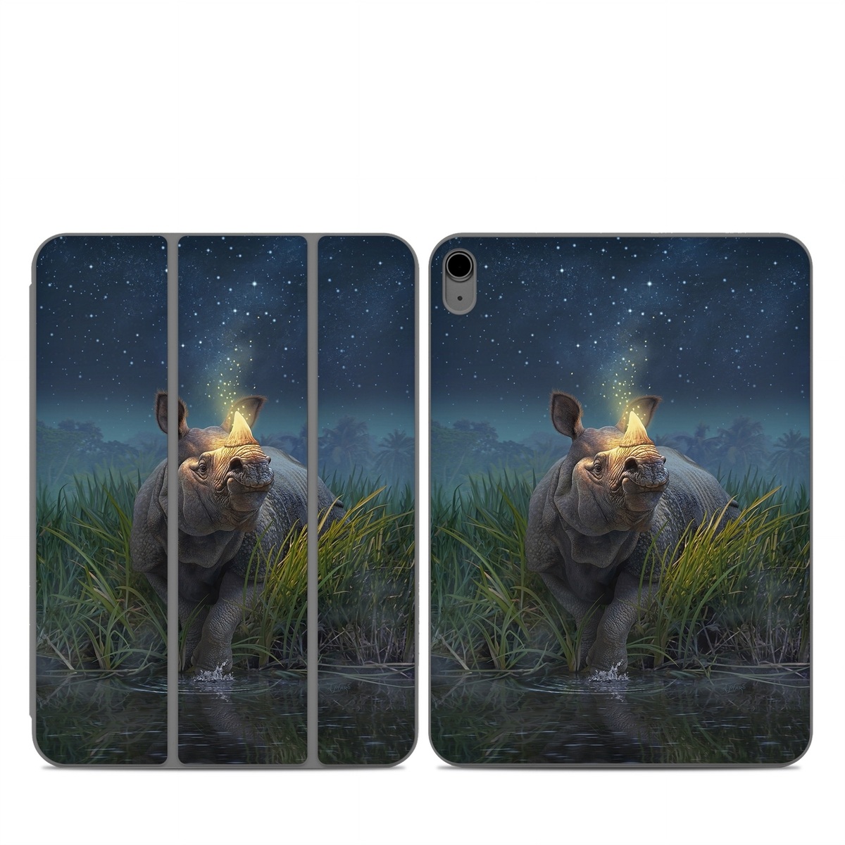 iStyles Smart Folio for iPad Series Skin design of Wildlife, Sky, Photography, Grass, Fawn, with blue, green, gray, yellow, white colors, and tagged with animals, nature, animals, fantasy, rhino, sci-fi.