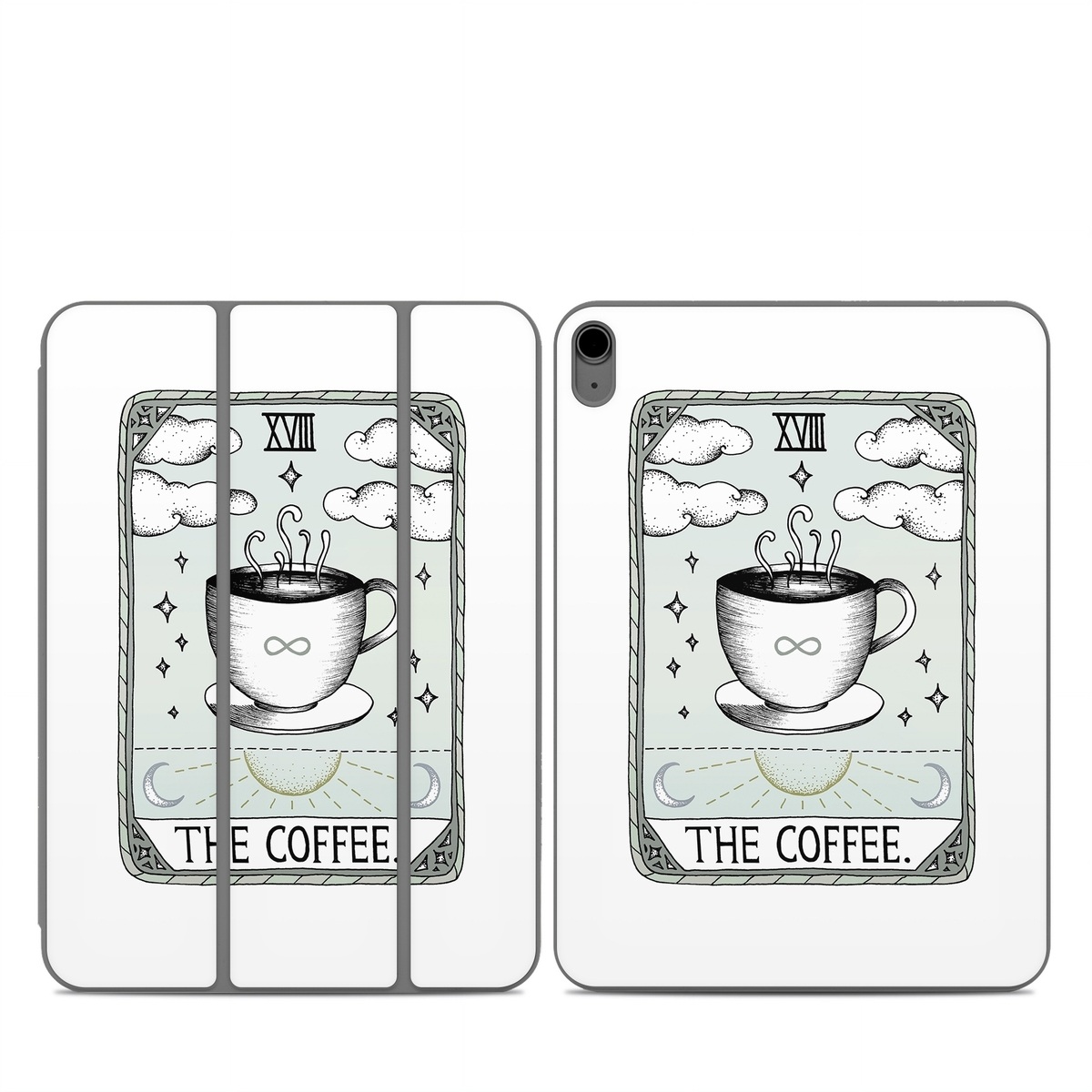 iStyles Smart Folio for iPad Series Skin design of Cup, Cartoon, Drinkware, Coffee cup, Tableware, Teacup, Illustration, Drink, Line art, with white, black, green, gray, yellow colors, and tagged with objects, signs, space, coffee, handdrawn, pastel, sketch, tarot.