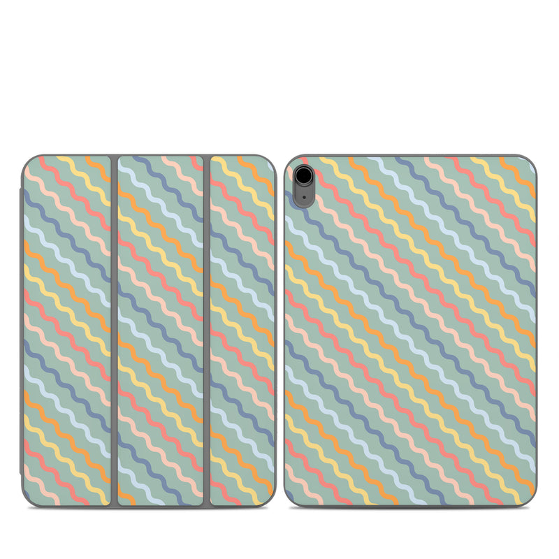iStyles Smart Folio for iPad Series Skin design of Azure, Blue, Orange, Textile, Wood, Art, Font, Line, Aqua, Symmetry, with blue, orange, yellow, pink colors, and tagged with patterns, colorful, wavy.