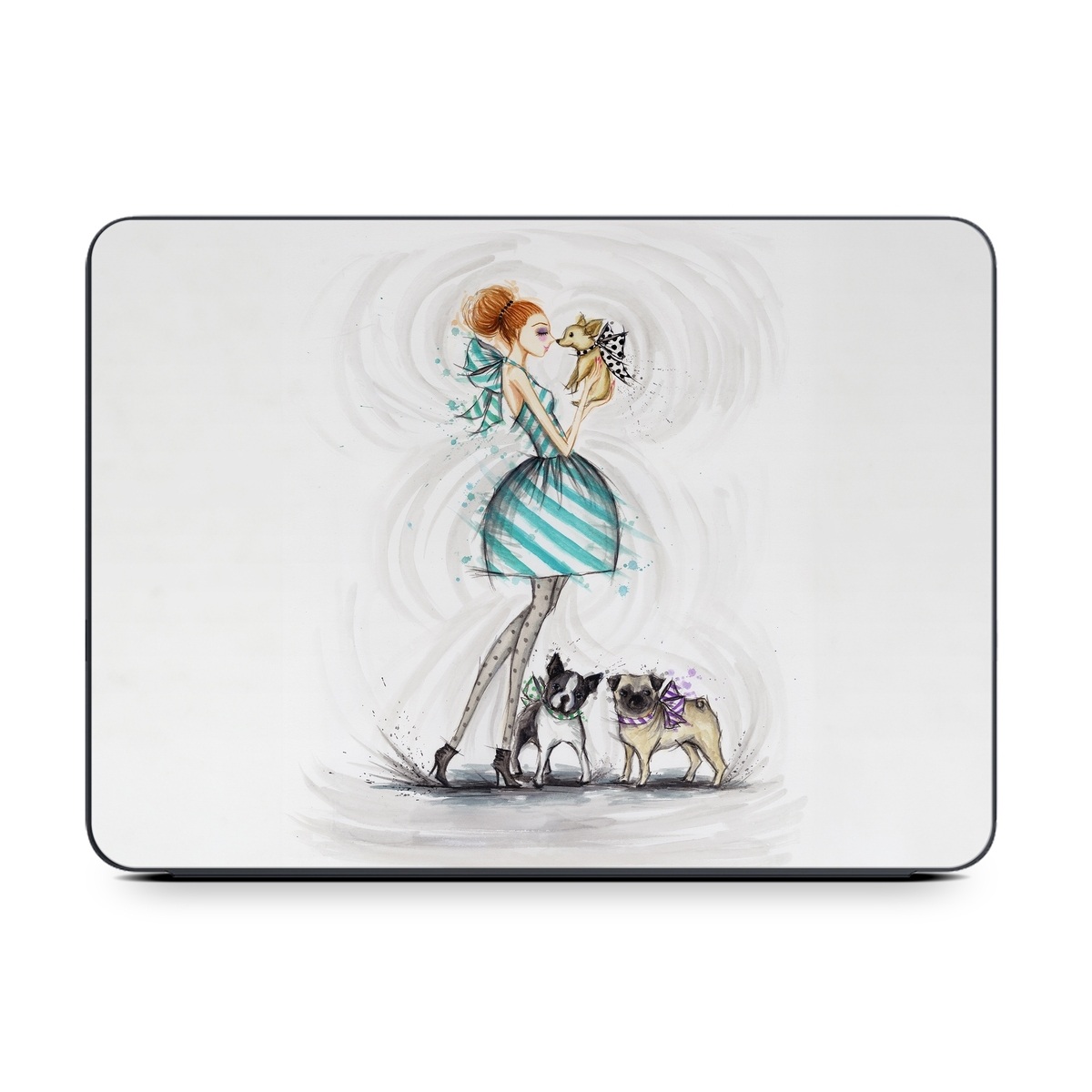 iStyles Smart Keyboard Folio for iPad Series Skin design of Illustration, Cartoon, Drawing, Art, Costume design, Fictional character, Fashion illustration, Sketch, with gray, black, white, blue, gray, yellow, brown colors, and tagged with people, fineart, animals, fashion, animals, bulldog, chihuahua, dogs, dresses, fashion, frenchbulldog, pug.