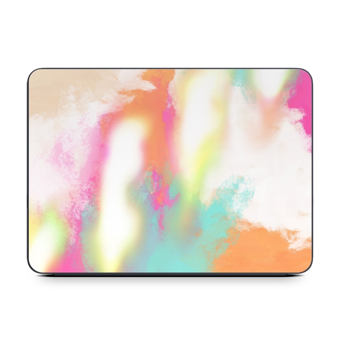 iStyles Smart Keyboard Folio for iPad Series Skin design of Sky, Yellow, Orange, Pink, Art, Illustration, Visual Arts, Pattern, Colorfulness, Watercolor Paint, with white, pink, orange, yellow, blue, brown colors, and tagged with abstract, abstract, bohemian, boho, illustration, rainbow.