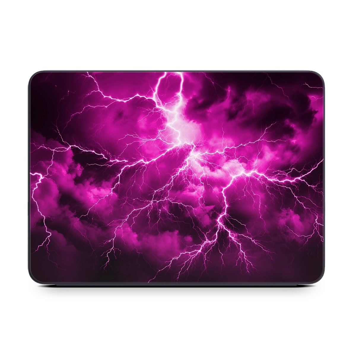 iStyles Smart Keyboard Folio for iPad Series Skin design of Sky, Thunder, Lightning, Thunderstorm, Atmosphere, White, Purple, Light, Nature, Water, with black, pink colors, and tagged with patterns, nature, lightning, sky, thunderstorm, storm, electricity.
