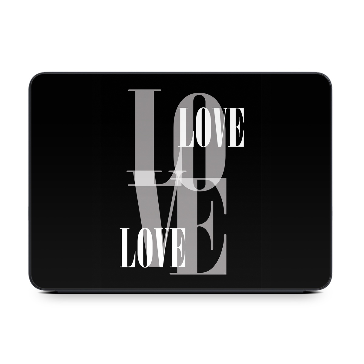 iStyles Smart Keyboard Folio for iPad Series Skin design of Gesture, Font, Sleeve, Darkness, Logo, Brand, Graphics, Illustration, Terrestrial animal, Art, with black, white, gray colors, and tagged with signs, blackandwhite, grey, love, text.