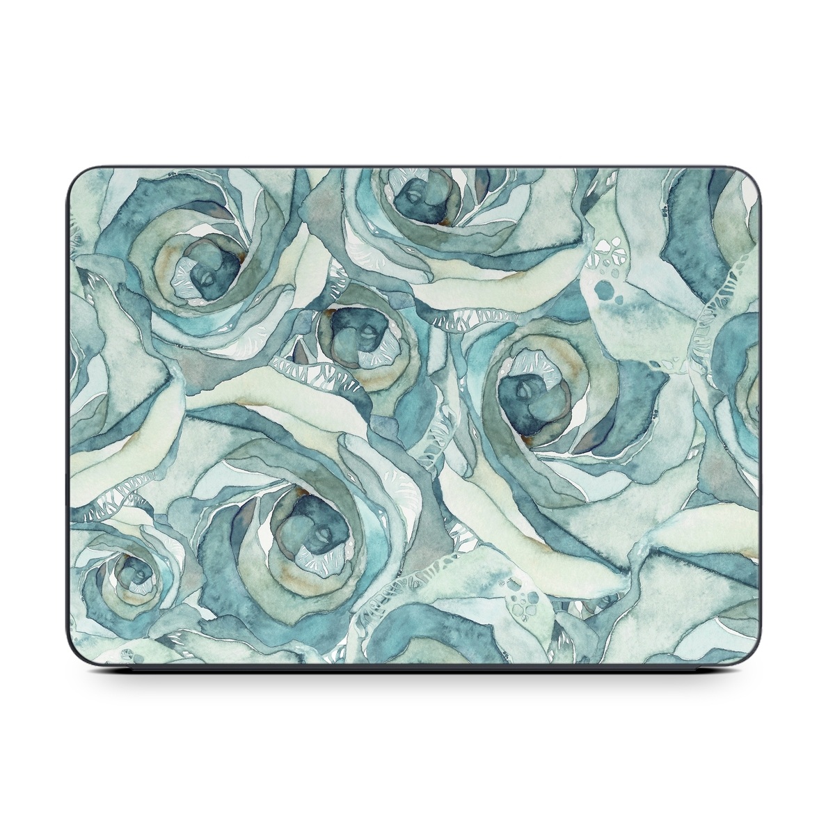 iStyles Smart Keyboard Folio for iPad Series Skin design of Rose, Garden roses, Blue, Flower, Rose family, Watercolor paint, Plant, Pattern, Rosa × centifolia, Blue rose, with blue, green colors, and tagged with patterns, flowers.