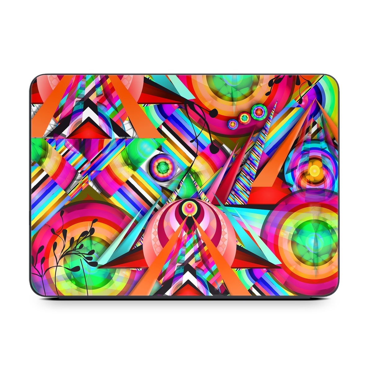 iStyles Smart Keyboard Folio for iPad Series Skin design of Psychedelic art, Pattern, Design, Graphic design, Colorfulness, Visual arts, Circle, Art, with red, pink, green, yellow, orange colors, and tagged with patterns, abstract.