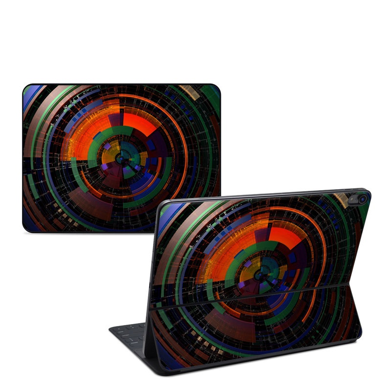 iStyles Smart Keyboard Folio for iPad Series Skin design of Colorfulness, Pattern, Circle, Design, Architecture, Symmetry, Art, Spiral, Psychedelic art, with black, red, blue, green, orange, brown colors, and tagged with abstract, patterns.
