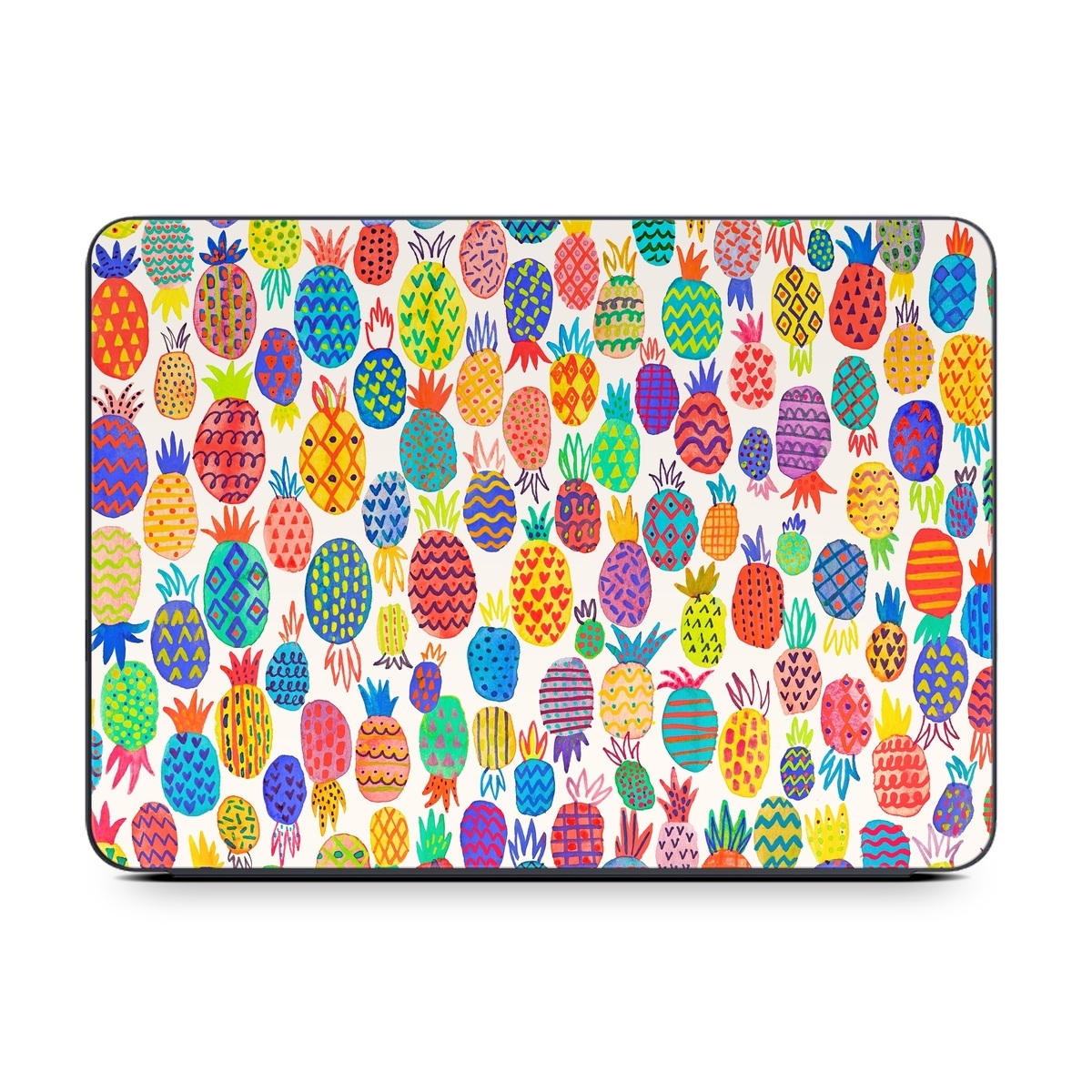iStyles Smart Keyboard Folio for iPad Series Skin design of Colorfulness, Textile, Art, Line, Circle, Symmetry, Pattern, Electric blue, Visual arts, Design, with white, red, blue, green, yellow, purple, pink colors, and tagged with patterns, objects, color, colorful, food, fruit, paint, pineapple, pineapples, summer, tropic, tropical, vacation.