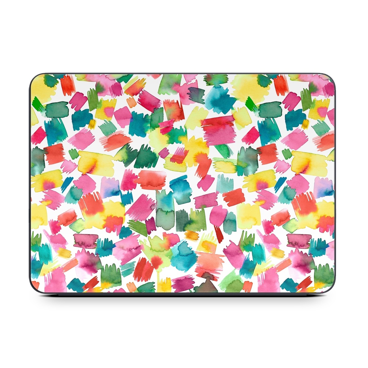 iStyles Smart Keyboard Folio for iPad Series Skin design of Colorfulness, Rectangle, Pattern, Art, Creative arts, Font, Circle, Tints and shades, Symmetry, Magenta, with white, red, pink, yellow, orange, green, blue colors, and tagged with patterns, brush, watercolor, strokes.